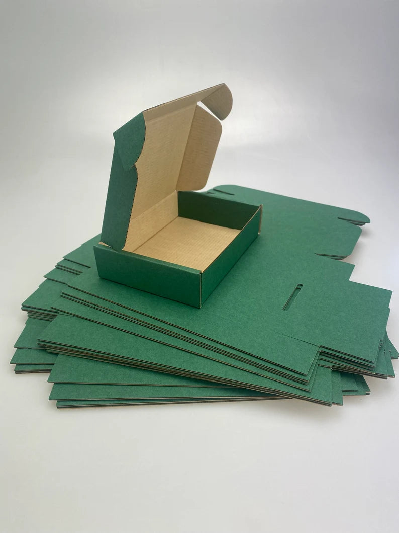 Get a quote15 pcs green/brown matt shipping boxes are durable and sturdy. Corrugated boxes are usually used as storage boxes or shipping boxes. Keep your small items clean and tidy, or pack something suitable for mailing. Quality shipping cardboard boxes are plain brown outside, ideal for gifts, presents, weddings & presentation purposes.